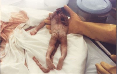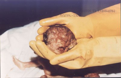 This 25-week-old "fetus" was aborted in December of 1989 at the Women's Pavilion, a Houston, Texas, abortion clinic - one in a chain owned by Dr. Douglas Karpen. The 15-inch preborn underwent a D&E abortion, where limbs are removed one by one. The head and arm of this baby were ripped off the body.