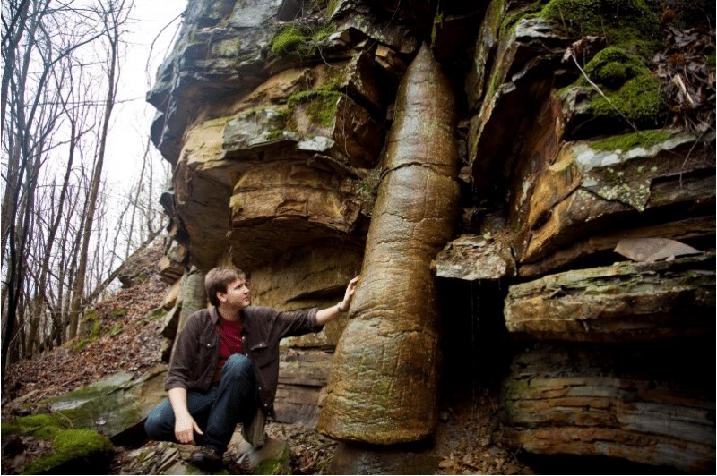 | The second problem with the geologic layers supposedly taking millions of years to accumulate is that we have fossils that throw a giant monkey wrench into that possibility. They are called "polystrate fossils." In this case, polystrate tree trunks. |