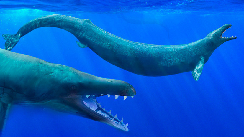 tapering to a point". This matches the description of a Tylosaurus - a type of reptilian sea lizard and supposedly extinct for 100 million