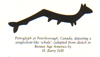 A curious petroglyph was discovered at Peterborough, near Toronto in Ontario, Canada, dated around the year 1700 B.C. It bears a striking resemblance to a type of whale-like aquatic animal called "zeuglodonts" - extremely elongated sea creatures, now extinct. This could be the oldest illustration of a sea monster.