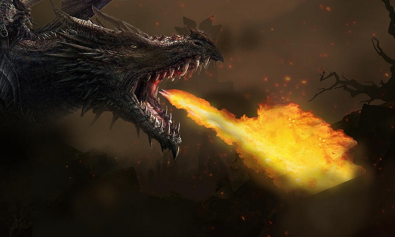 And why SHOULD it fear? No attack on it would succeed, and even if one came, it could respond with 1. a flame-thrower or 2. the devouring ability of a tyrannosaur. |